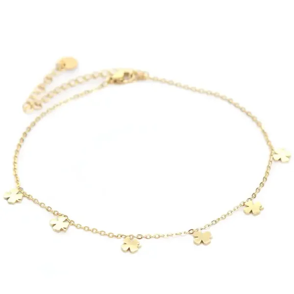 Mooi enkelbandje met een leuke klaver bedeltjes.Materiaal: stainless steelAfmeting: 22 cm met een verlengkettinkje van 9 cm