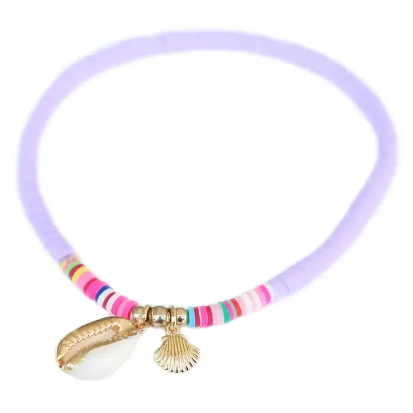 Kleurrijk enkelbandje van felroze kralen met een gold plated schelp bedel en een schelp bedel met gouden randjes. Love Ibiza