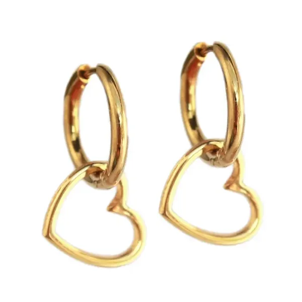 Mooie gouden ring oorbelletjes met een gouden hart hanger.