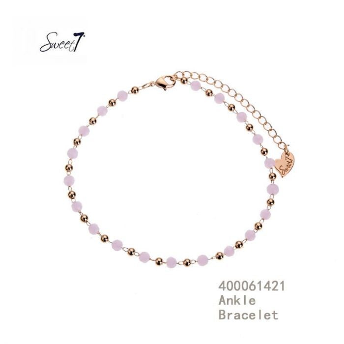 Sweet7 Enkelband Rose steentjes