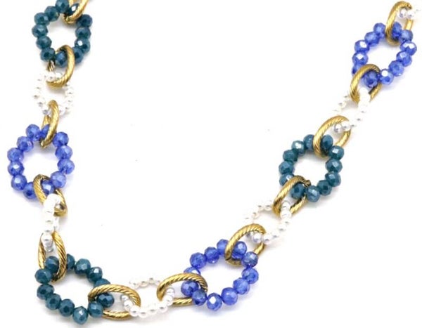 Glassteentjes blauw lange ketting RVS