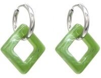 RVS oorbellen met groende kaders 1.8x3 cm