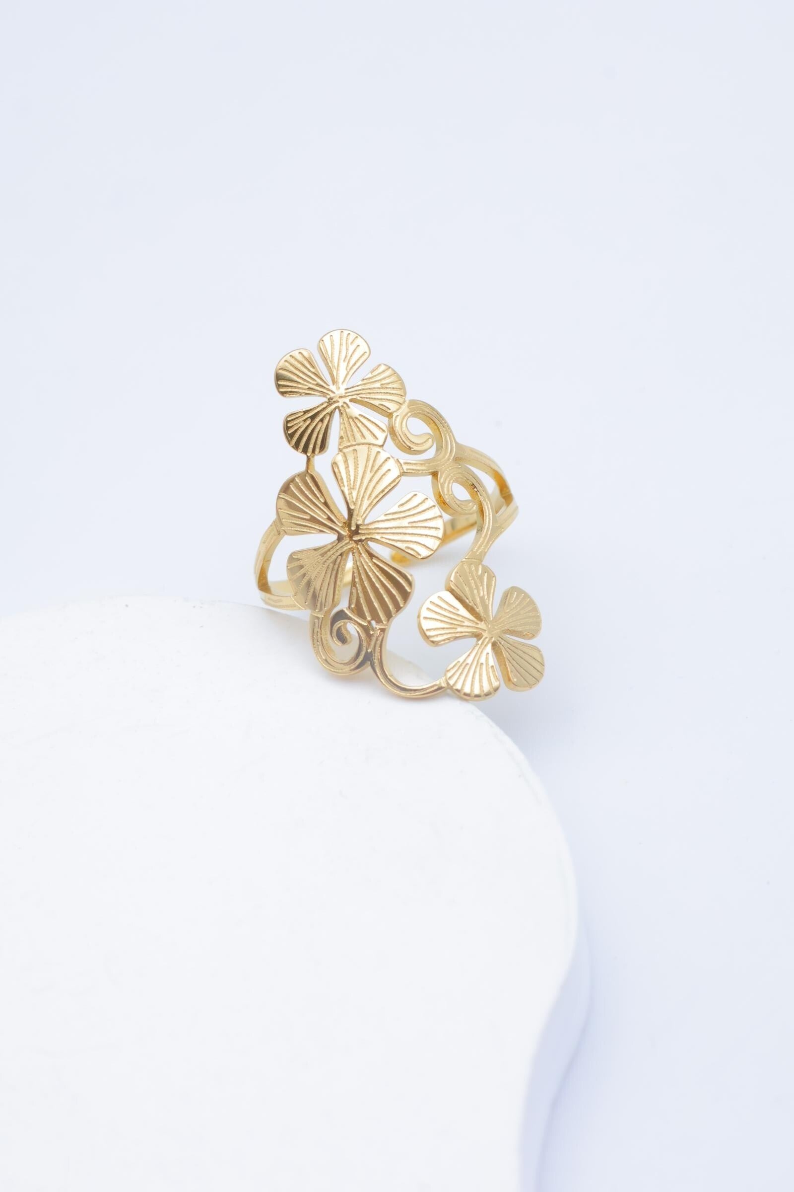 RVS RING MULTI FLOWERS DORE 8