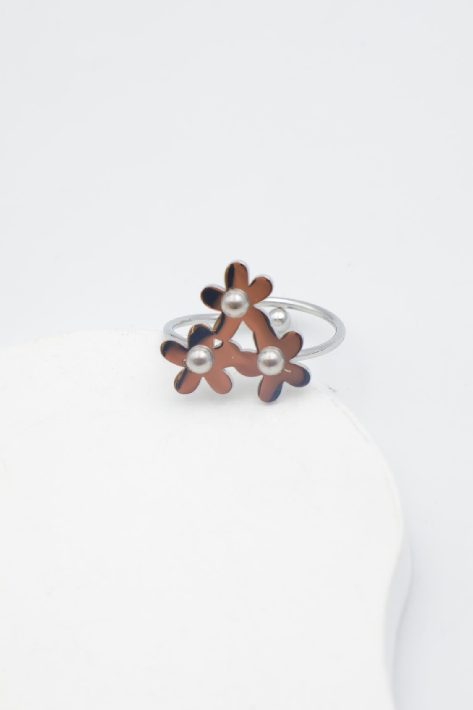 RING RVS 3 FLOWERS ARGENT 12