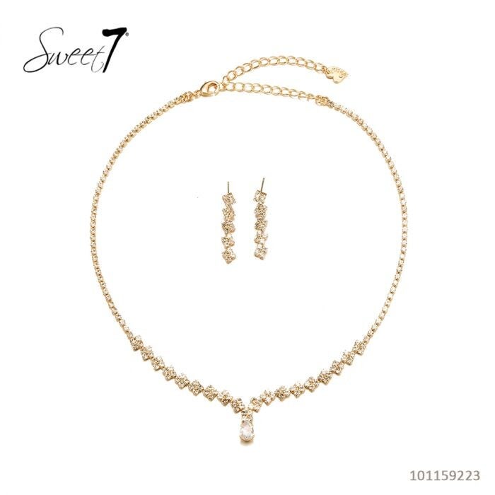 Merk Sweet7 Model KettingKorte ketting Lengte Kettingen tot 40 cm Kleur Goud Materiaal Koper, Glas kristal