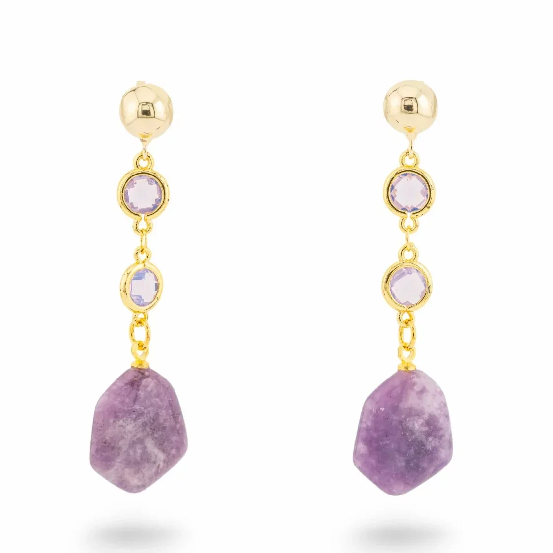 BRONZEN OORKNOPJES MET HALFEDELSTENEN EN ZIRKONIA'S 16X60 MM RUWE AMETHIST