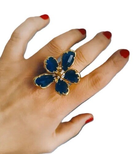 Het middelpunt van deze ring is het bloemvormige kattenoog met 5 bloemblaadjes, dat een vleugje gratie en vrouwelijkheid toevoegt aan het algehele ontwerp. Kattenoog staat bekend om zijn vermogen om licht op een unieke manier te reflecteren, waardoor een lichtgevend en fascinerend effect ontstaat.