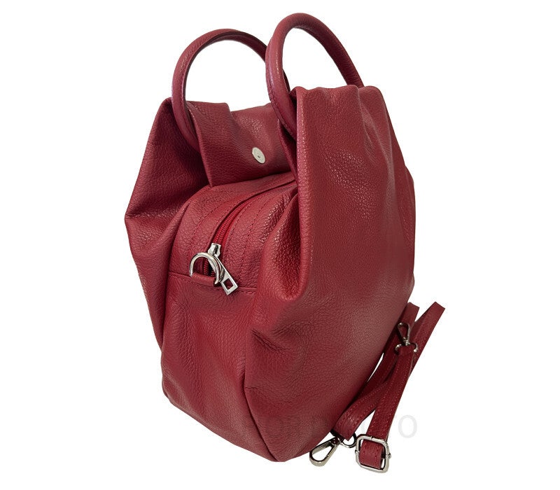 Handtassen van dollarleer met ronde handvatten, ritssluiting en magnetische clip, tasmodel. Voorzien van een verstelbare schouderband