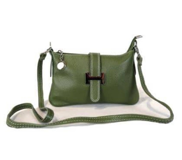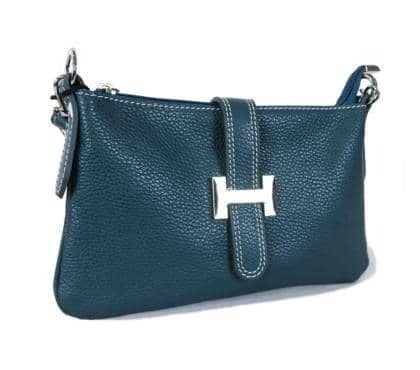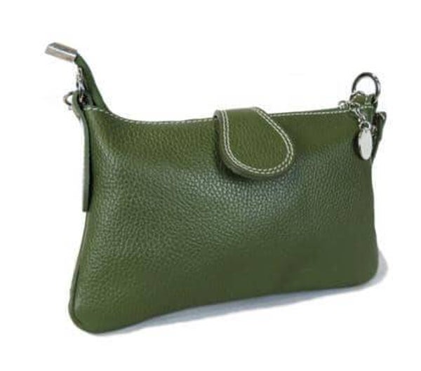 Buideltas met afneembaar leren handvat - Afneembare schouderriem van leer - Magneet- en ritssluiting - Binnenkant bekleed met stof - GEMAAKT IN ITALIË