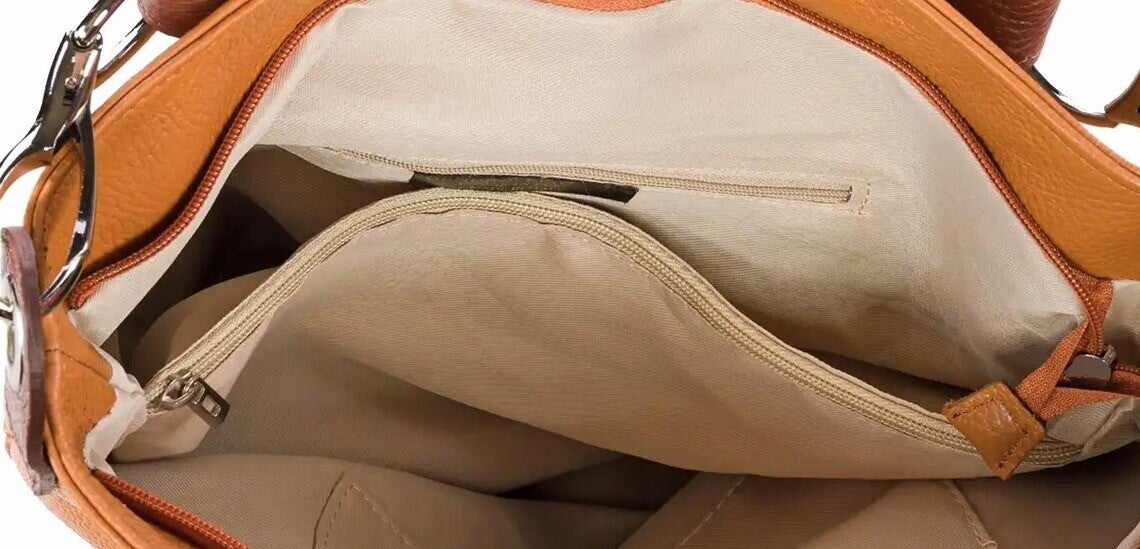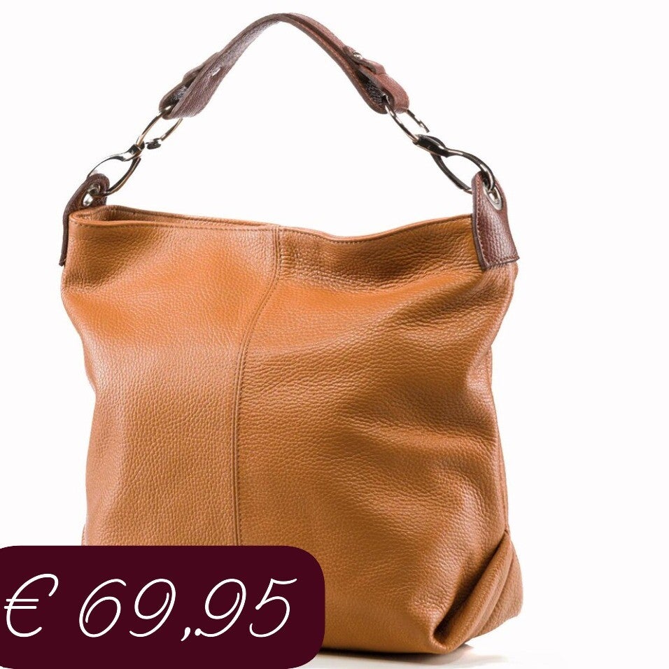 Echt lederen schoudertas Echt leer Dubbel ritsvak Accessoires van nikkelmetaal Zachte constructie Houder voor mobiele telefoon Binnenzak met ritssluiting Achterzak met ritssluiting Voering van polyester