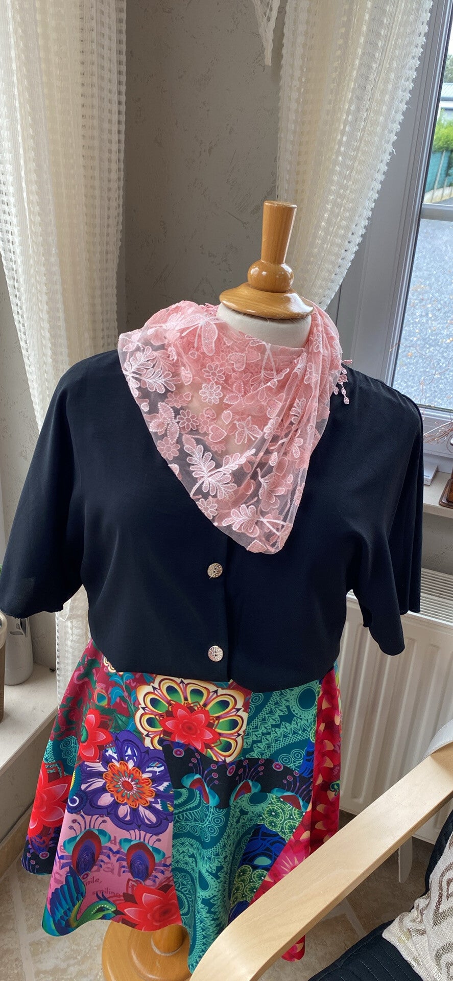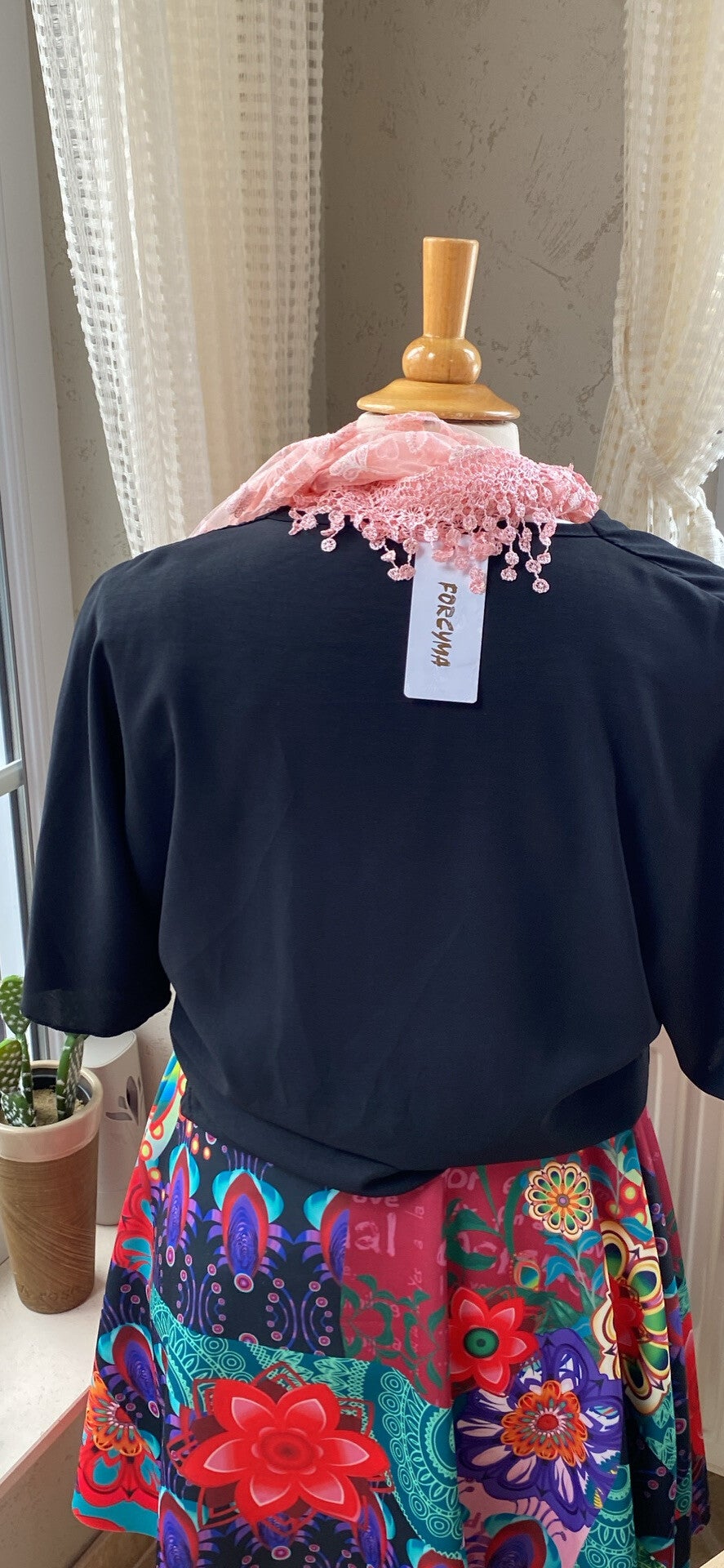 Zwart bloesje met knopen