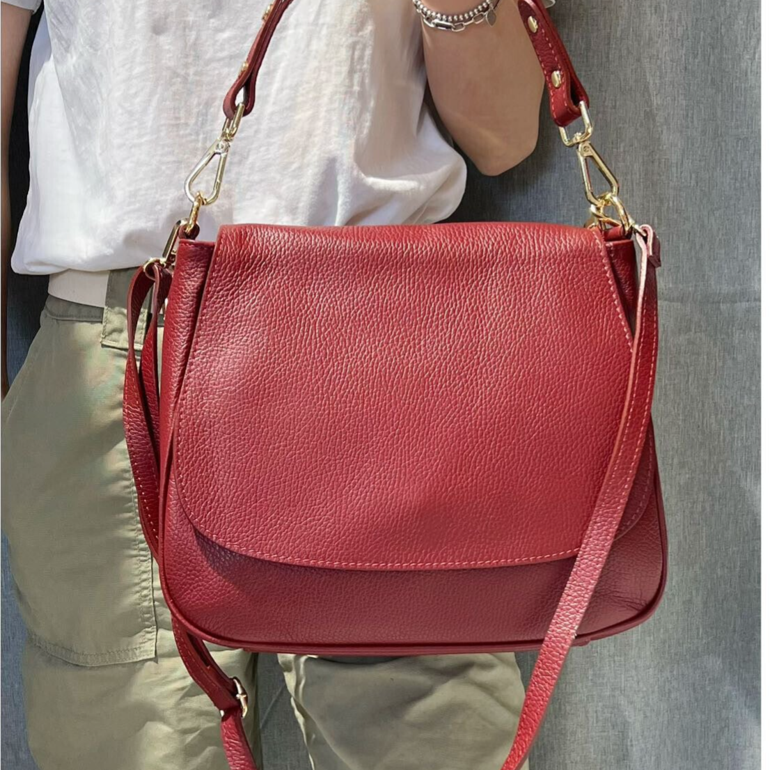 Shoulder bag in grained leather, back pocket, closed with zipper, removable leather shoulder strap included, easy to carry on the shoulder, size: 30x23x10cm Composition: Leather : 100%