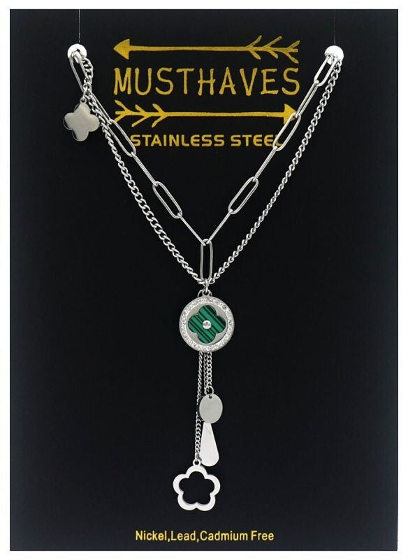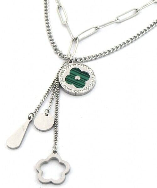 B-A7.3 N126-033S S. Steel Layered Necklace Clovers 41cm