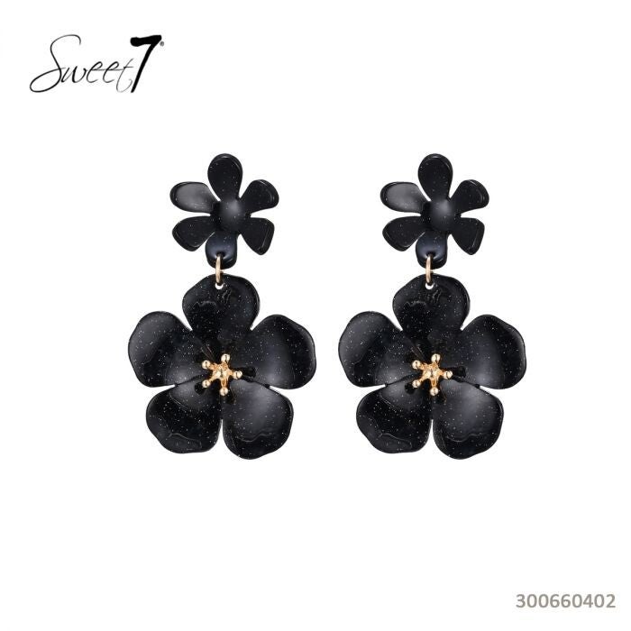 Sweet7 Zwarte bloemen oorbellen