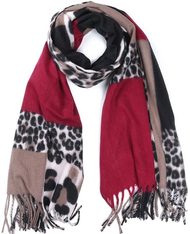 T-K5.2 SCARF405-003A Soft Scarf Leopard 180x70cm Brown-Red