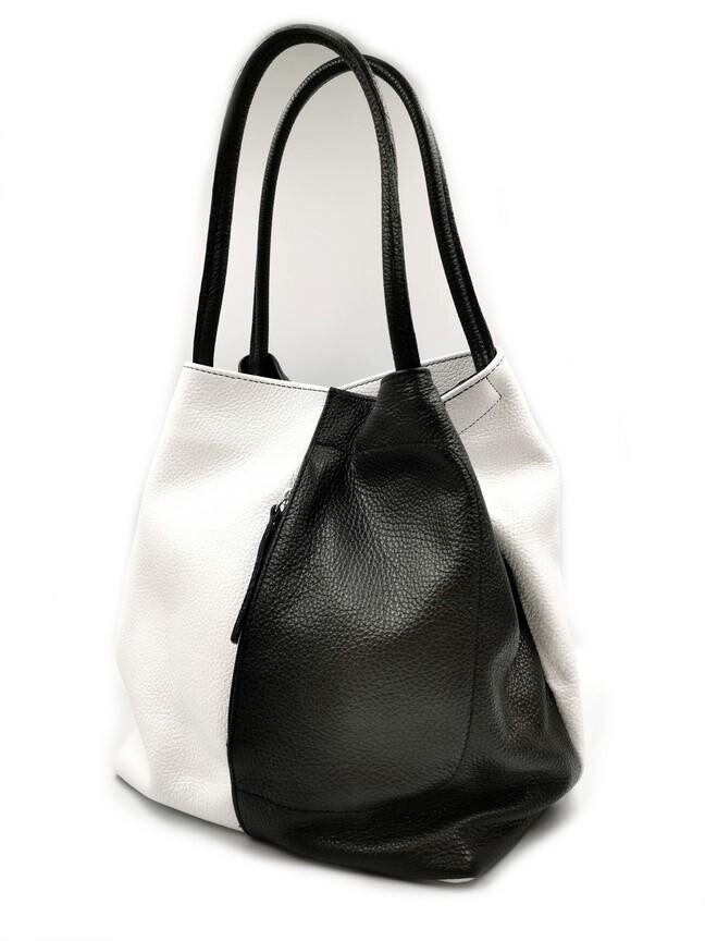 Tweekleurige zwart witte handtas in soepel leder