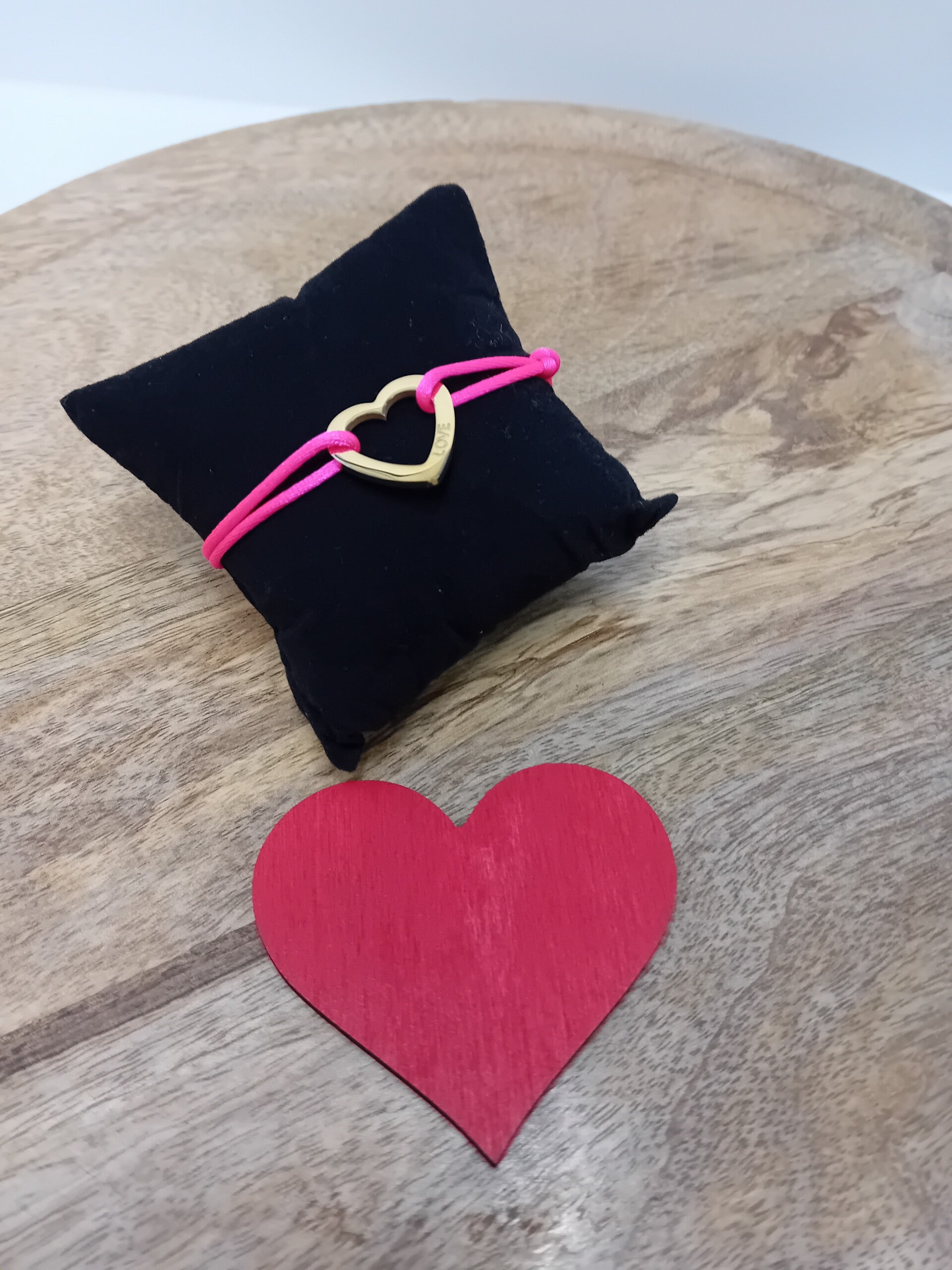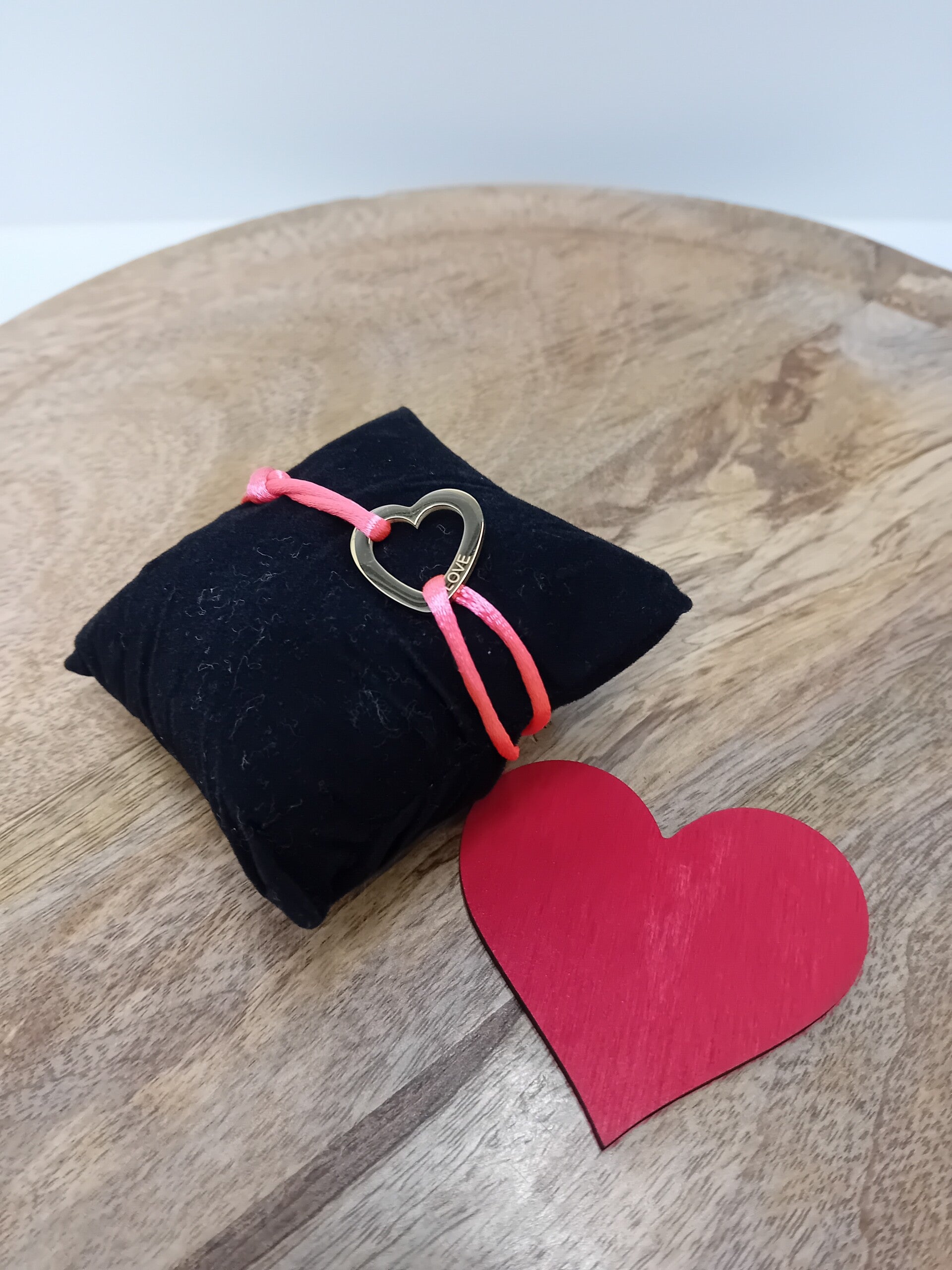 Verstelbaar armbandje in zijde en met RVS hartje