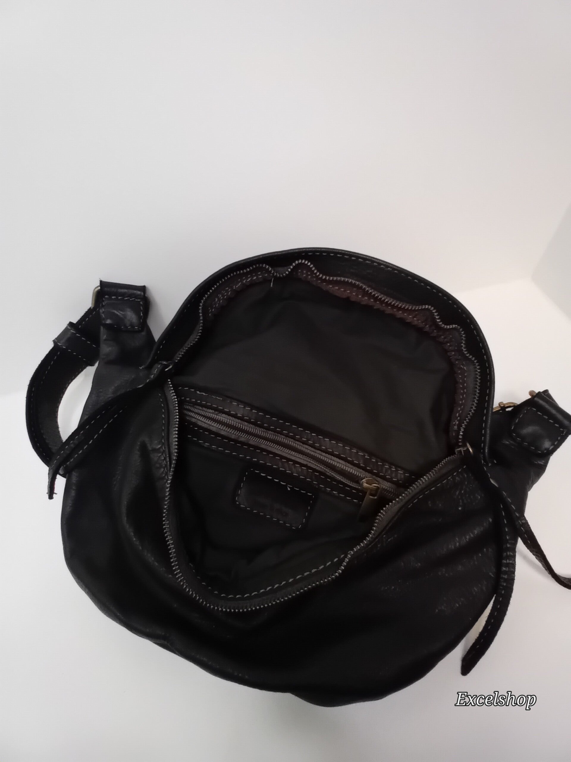 Mooie tijdloze handige lederen schoudertas. Binnenzijde stof l en een extra binnenzakje voor gsm en toiletgerief.