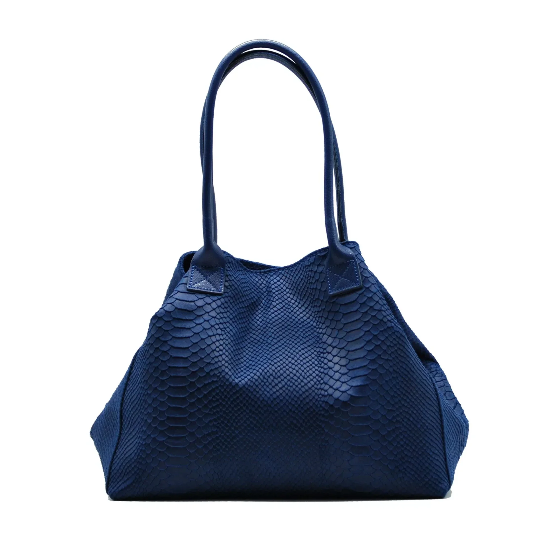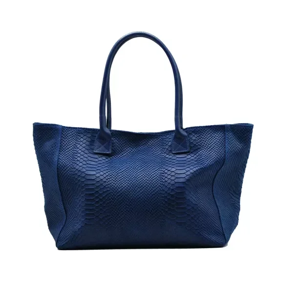 Schoudertas van echt leer met pythonprint, gemaakt in Italië. Dubbele handvatten, waardoor het gemakkelijk met de hand of op de schouder te dragen is. De tas heeft een centrale ritssluiting en een magnetische knoopsluiting. Het enkele binnenvak is met stof gevoerd en heeft een vak met ritssluiting.