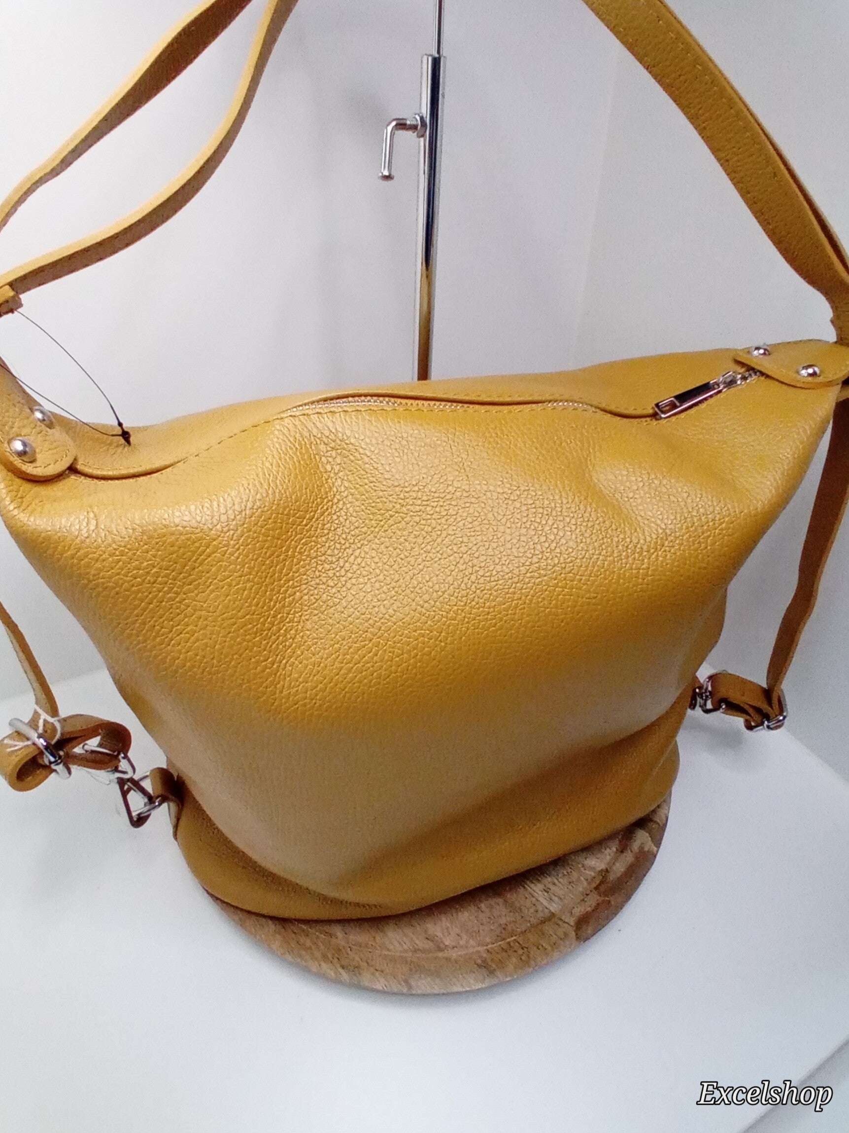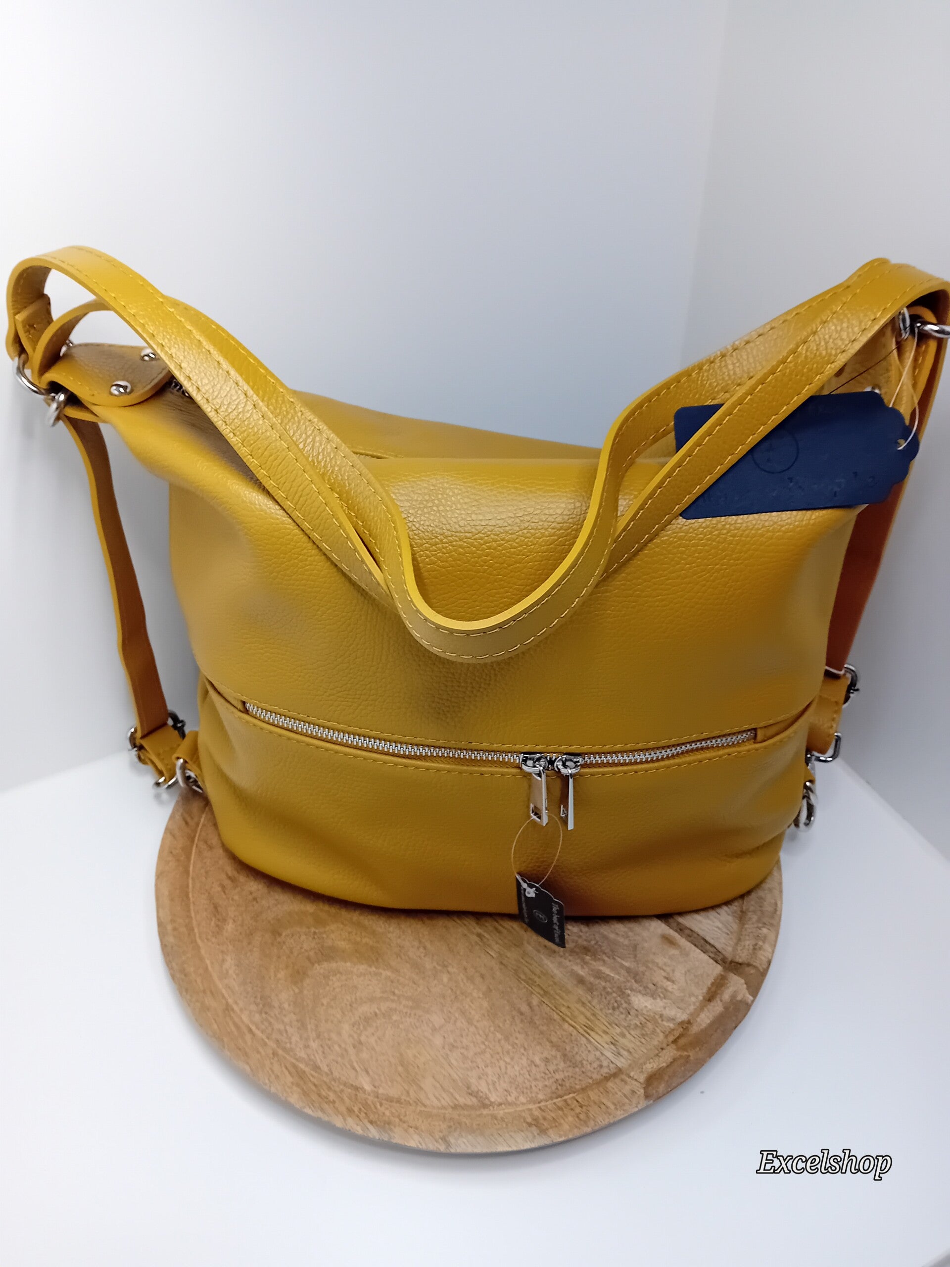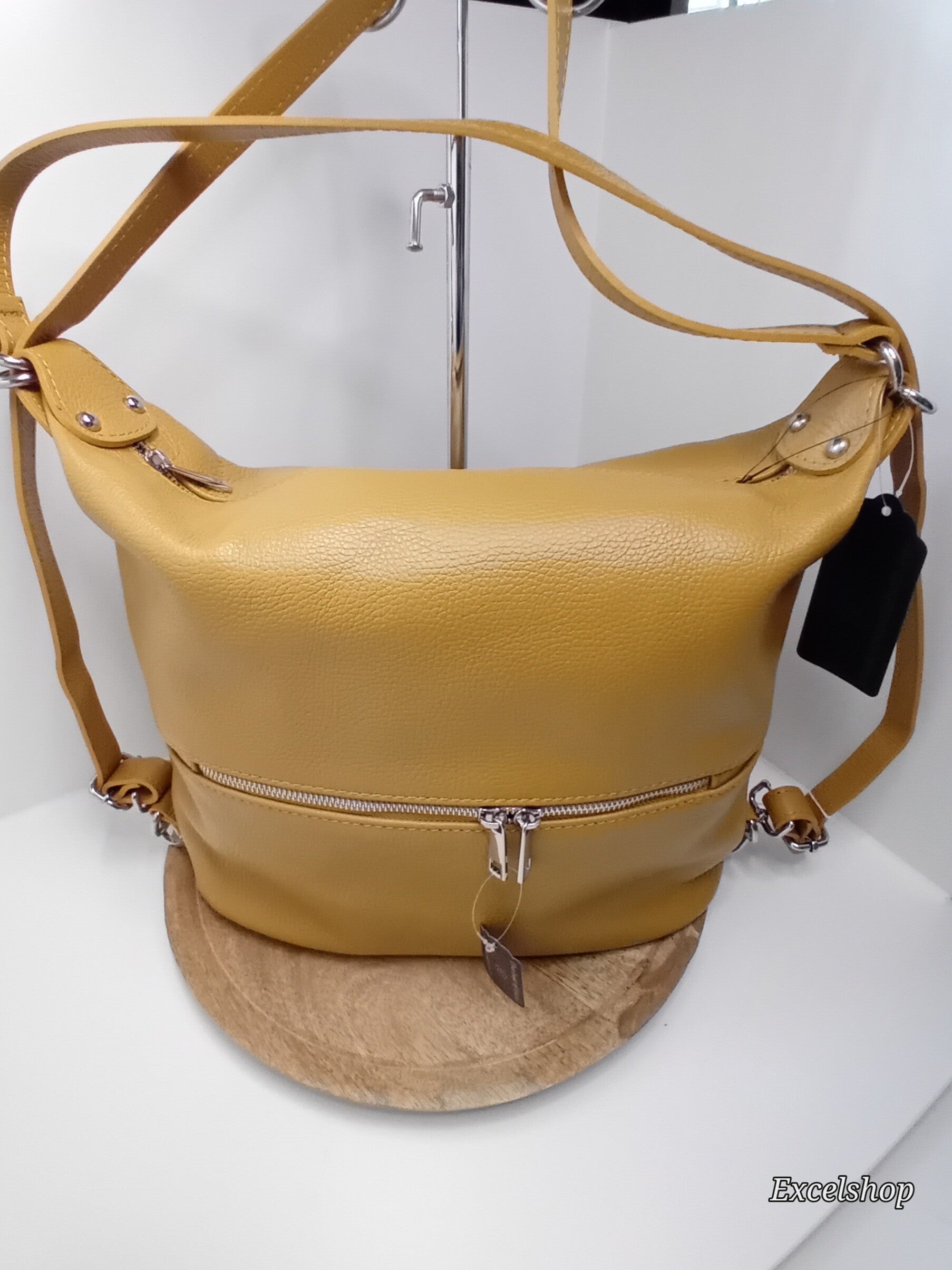 Lederen handtas 2 in 1 ( handtas & rugzak) oker
