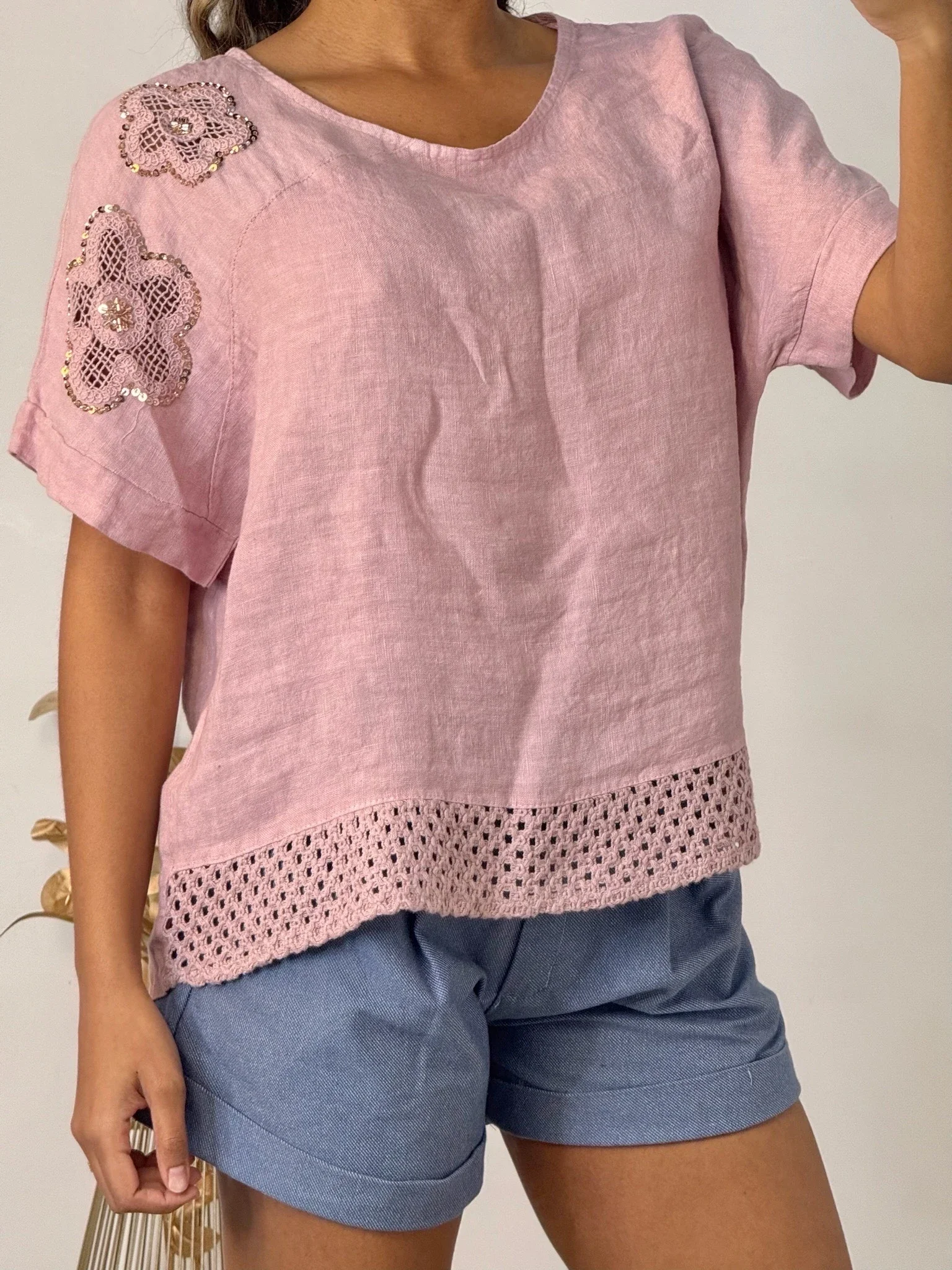 Top van 100% Italiaans linnen voor dames, ideaal voor lente/zomer 2025, licht en ademend - Made in Italy.
