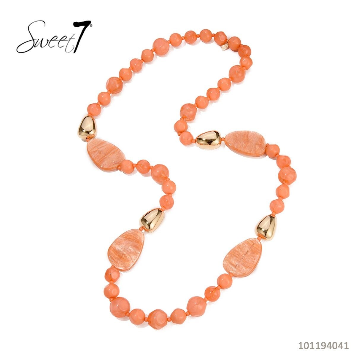 Sweet7 Koraalkleurige kralenketting Lengte 85 cm 101194041