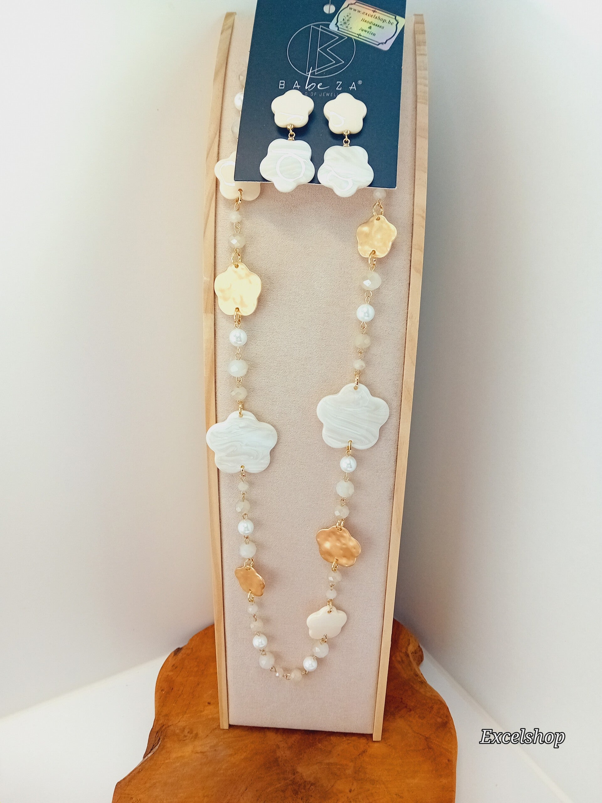 Setje ketting+oorbellen koraal ecru