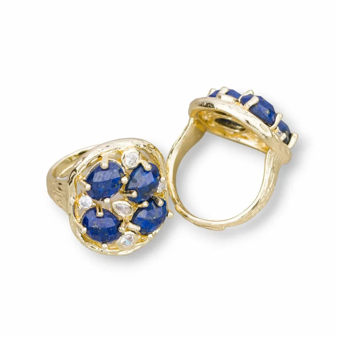 Bronzen ring met halfedelstenen en zirkonen, 20x23 mm, verstelbare maat, gouden lapis lazuli